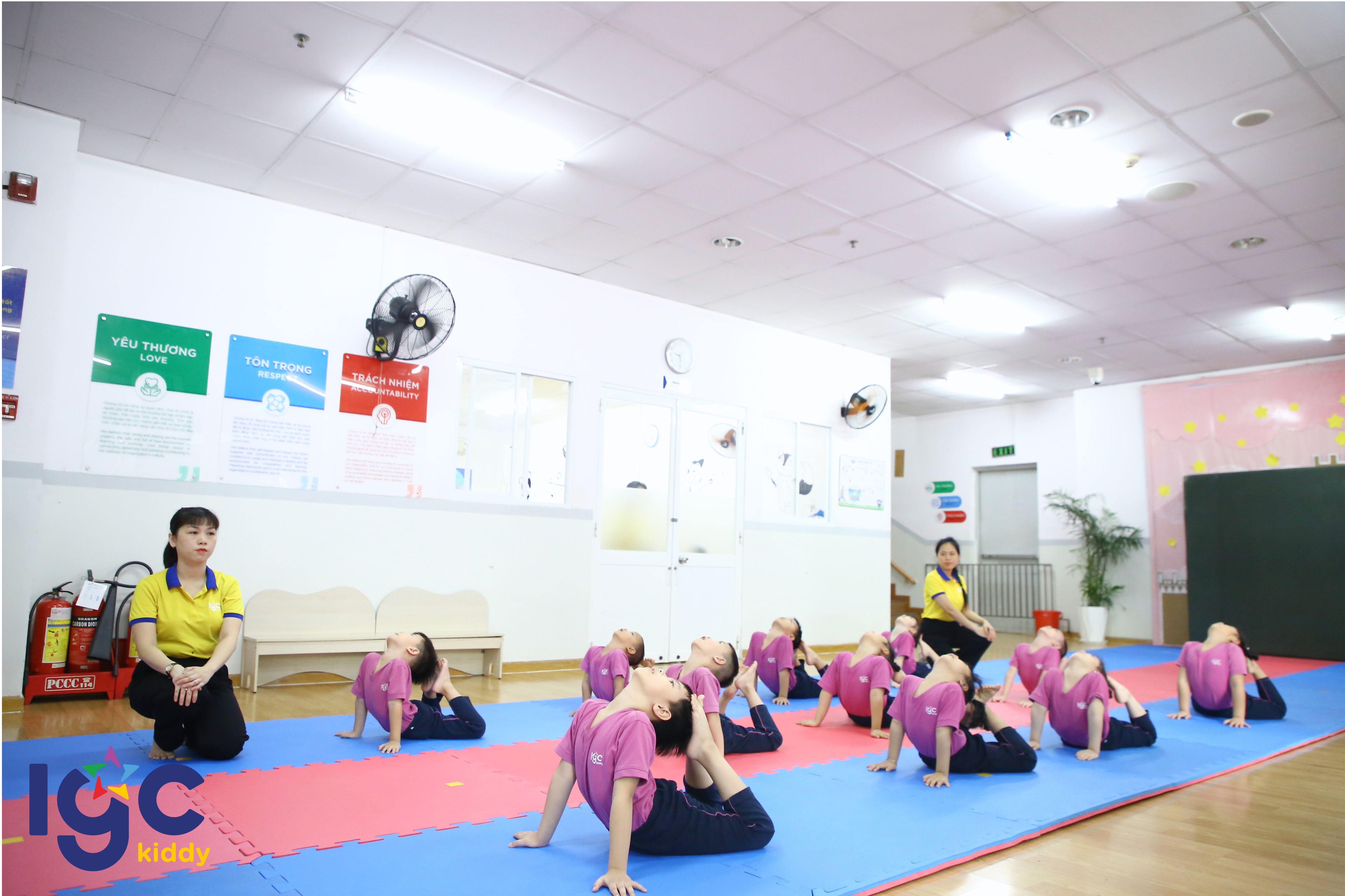 ✅30 phút mỗi ngày – nền tảng vàng cho thể lực và ý chí: Mỗi giờ học là chuỗi bài tập phong phú như xoạc chân, tam giác, làm cầu, nhảy ngựa, lộn chống nghiêng, chồng chuối dựa tường,… giúp trẻ dẻo dai, khỏe mạnh, tăng sức bền và hình thành khả năng vượt khó. ✅ Kỷ luật – Tập trung – Tinh thần: Trẻ học cách lắng nghe, phản xạ nhanh qua các hiệu lệnh bằng còi; rèn tác phong nghiêm túc và tính tự giác – những yếu tố tạo nên sự tự tin và bản lĩnh. ✅ Giáo dục văn hóa và lễ nghi: Ngay trong mỗi buổi học, trẻ được làm quen với văn hóa chào hỏi, học cách thể hiện sự tôn trọng và lễ phép – một giá trị nhân cách quan trọng trong triết lý giáo dục IGC Kiddy. ✅Cơ sở vật chất: Không gian học được trang bị các thiết bị đạt chuẩn, đảm bảo an toàn tuyệt đối và mang đến trải nghiệm vận động hiện đại, chuyên nghiệp.