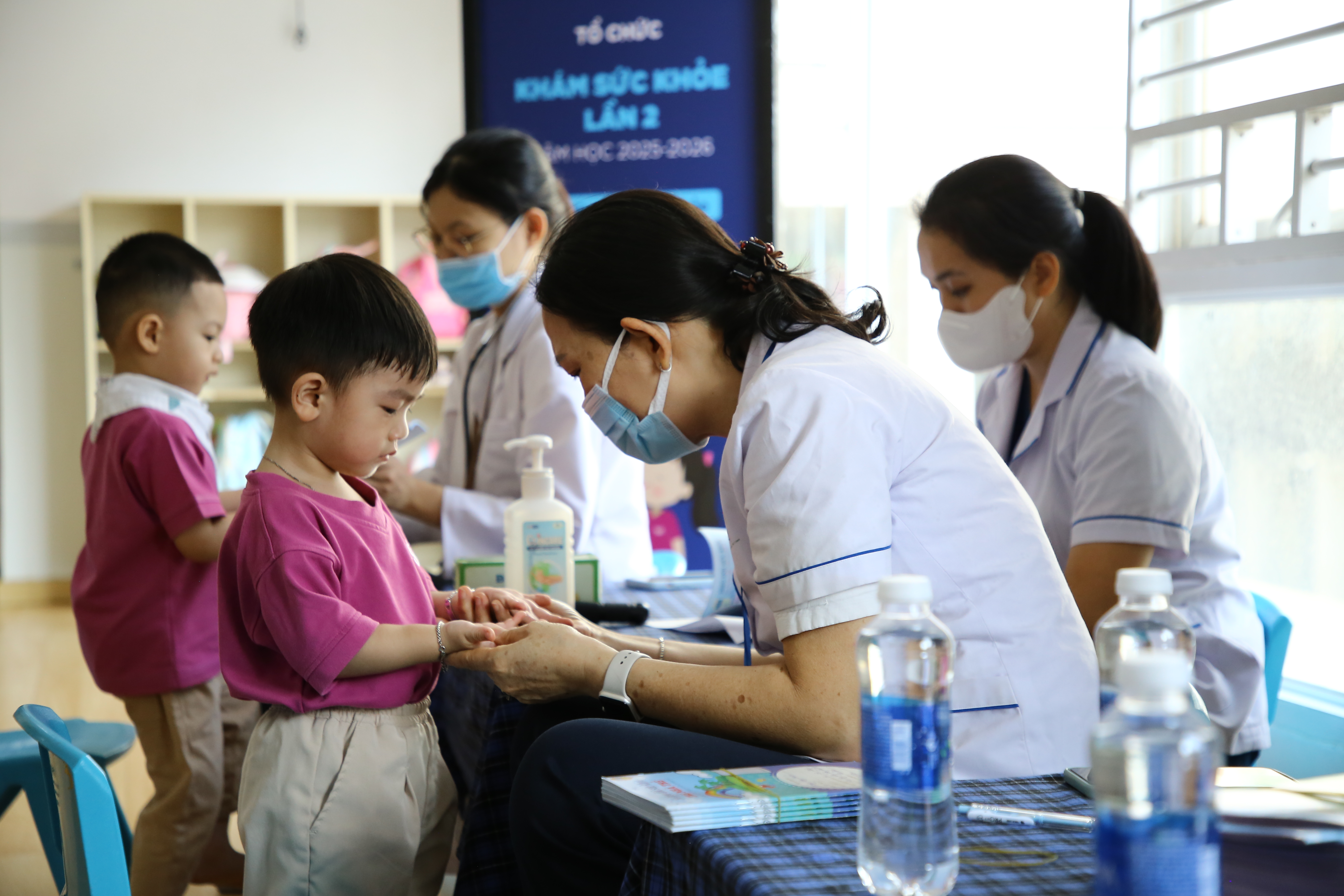 Thông qua hoạt động này, nhà trường có thể theo dõi sự phát triển thể chất của từng bé theo từng giai đoạn, đồng thời kịp thời phát hiện những dấu hiệu cần được quan tâm để phối hợp cùng phụ huynh chăm sóc và điều chỉnh chế độ sinh hoạt phù hợp. Kết quả khám sức khỏe của các bé cũng được thông báo đầy đủ đến ba mẹ, giúp gia đình có thêm thông tin để đồng hành cùng nhà trường trong việc chăm sóc sức khỏe cho con.