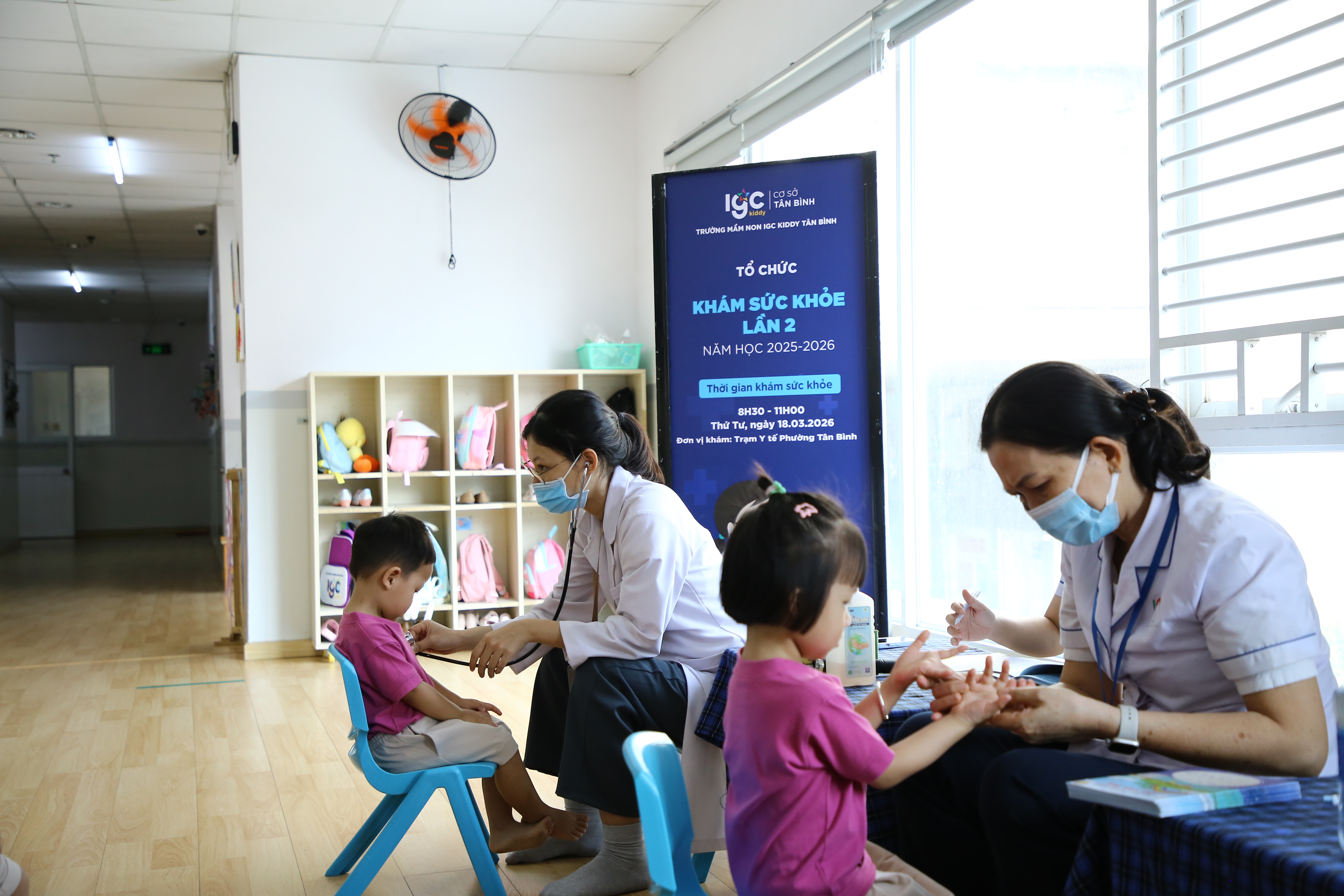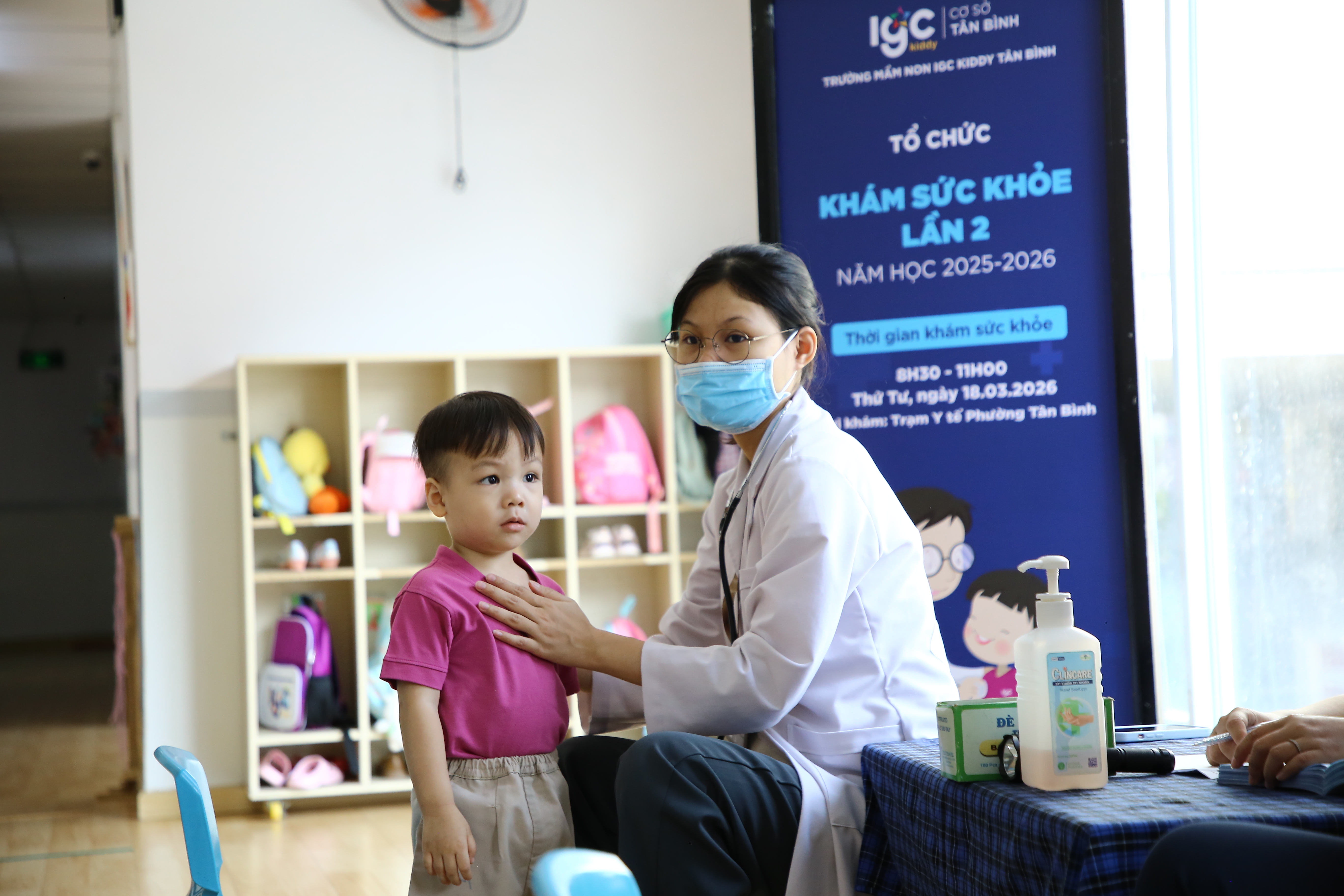 Sức khỏe luôn là nền tảng quan trọng để trẻ phát triển toàn diện cả về thể chất lẫn tinh thần. Chính vì vậy, tại IGC Kiddy Tân Bình, hoạt động khám sức khỏe định kỳ cho các bé được tổ chức thường xuyên nhằm theo dõi sự phát triển của trẻ và đảm bảo mỗi bạn nhỏ đều được chăm sóc tốt nhất trong những năm tháng đầu đời.